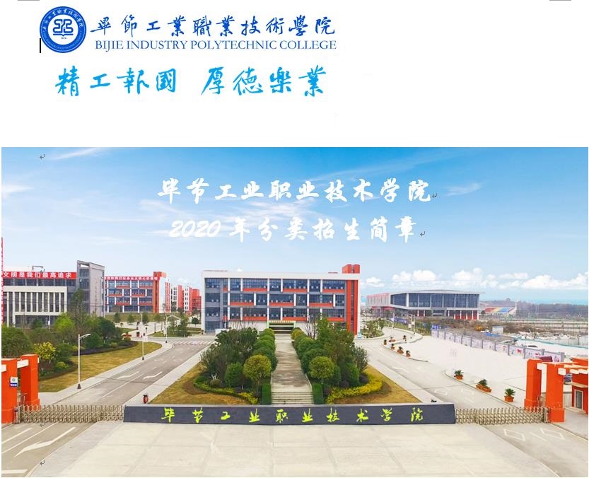 畢節(jié)工業(yè)職業(yè)技術(shù)學(xué)院是國(guó)家教育部備案、貴州省人民政府批準(zhǔn),具有高等學(xué)歷教育招生資格的公辦高等職業(yè)院校。學(xué)院位于畢節(jié)市金海湖新區(qū)職教城,毗鄰金海湖濕地公園,校園環(huán)境優(yōu)美,生活設(shè)施完善,為學(xué)生的學(xué)習(xí)和生活提供了優(yōu)質(zhì)的環(huán)境和條件。學(xué)院占地面積452畝,已完成建筑面積12.5萬(wàn)平方米,在建二期工程建筑面積7.3萬(wàn)平方米。學(xué)院師資力量雄厚,現(xiàn)有教職工233人,專任教師本科以上學(xué)歷178人,其中研究生以上學(xué)歷43人,正高級(jí)職稱4人,高級(jí)職稱65人,雙師型教師68人。學(xué)院以“精工報(bào)國(guó),厚德樂(lè)業(yè)”為校訓(xùn),堅(jiān)持立德樹(shù)人、質(zhì)量至上、特色立校的辦學(xué)理念,堅(jiān)持政府主導(dǎo)、行業(yè)參與、學(xué)校聯(lián)動(dòng)、企業(yè)融入的辦學(xué)模式;對(duì)接產(chǎn)業(yè)發(fā)展,立足自身優(yōu)勢(shì),優(yōu)化資源配置,努力打造現(xiàn)代裝備制造、汽車(chē)、電子信息、建筑工程和現(xiàn)代服務(wù)等若干特色專業(yè)群。