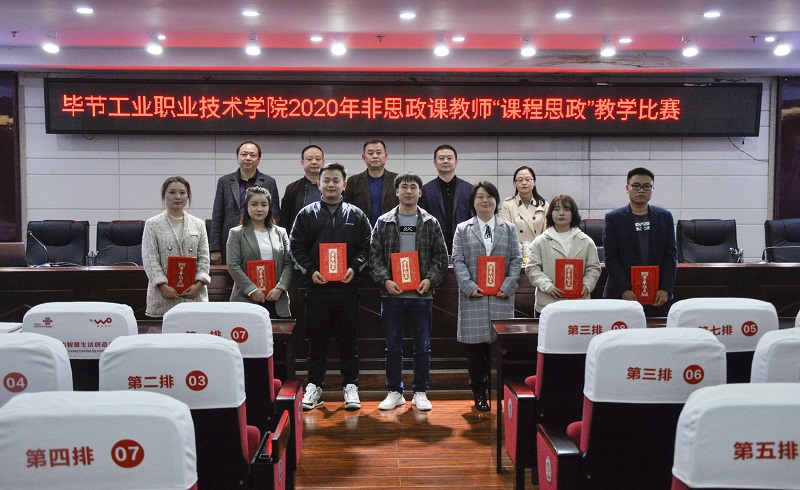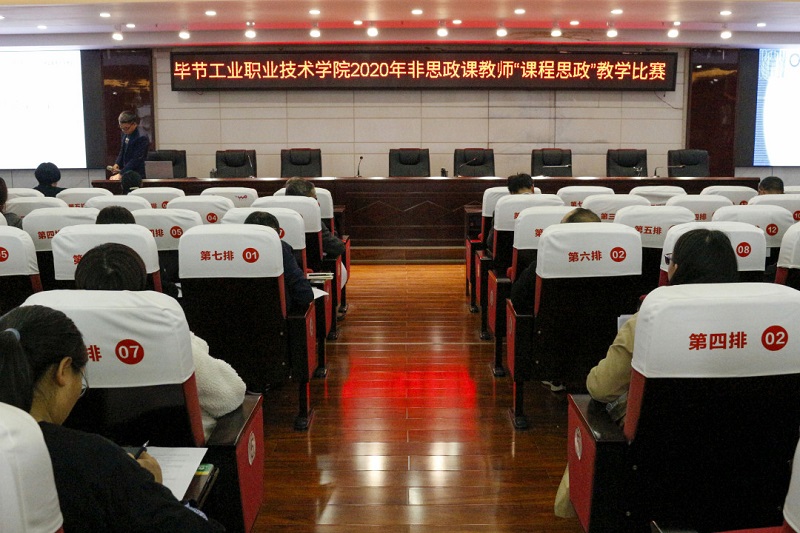 為深入學習貫徹習近平總書記關于教育的重要論述、全國教育大會精神,貫徹落實中共中央辦公廳、國務院辦公廳《關于深化新時代學校思想政治理論課改革創(chuàng)新的若干意見》《高等學校課程思政建設指導綱要》等文件精神,把思想政治教育貫穿人才培養(yǎng)體系,全面推進學院課程思政建設,發(fā)揮好每門課程的育人作用,提高學院人才培養(yǎng)質(zhì)量,培養(yǎng)擔當民族復興大任的時代新人。2020年10月14日下午,畢節(jié)工業(yè)職業(yè)技術學院在行政樓9樓會議室舉行2020年非思政課教師"課程思政"教學比賽,全院教職工觀摩了比賽。