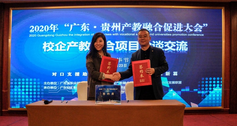為深入貫徹落實(shí)習(xí)近平總書記關(guān)于決勝全面建成小康社會,決戰(zhàn)脫貧攻堅和深化東西部扶貧協(xié)作的重要指示精神,進(jìn)一步落實(shí)十九大報告明確的產(chǎn)教融合的相關(guān)要求,會議強(qiáng)調(diào)了產(chǎn)教融合,校企合作的新時代要求。廣黔攜手,教育扶貧。廣東省教育廳二級巡視員朱俊文指出,“職教一人、就業(yè)一個、脫貧一家”。職業(yè)教育一頭連著產(chǎn)業(yè),一頭連著教育,在教育扶貧里是見效最快、成效最顯著的扶貧方式。以職業(yè)教育為抓手,以就業(yè)脫貧為導(dǎo)向,圍繞“發(fā)展教育脫貧一批”重要任務(wù),扎實(shí)推進(jìn)職業(yè)教育東西協(xié)作行動計劃。加強(qiáng)廣黔校企合作,深化產(chǎn)教融合,發(fā)揮企業(yè)經(jīng)濟(jì)實(shí)力,促進(jìn)職業(yè)教育高質(zhì)量發(fā)展。根據(jù)廣東、貴州,廣 州、畢節(jié)兩省兩市扶貧協(xié)作以及深化戰(zhàn)略合作協(xié)議有關(guān)要求,促進(jìn)教育鏈、人才鏈與產(chǎn)業(yè)鏈、創(chuàng)新鏈有機(jī)銜接,打造產(chǎn)教融合、校企合作、校校合作,為教育脫貧攻堅書寫“奮進(jìn)之筆”。