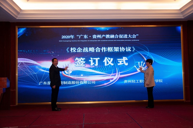 會上,廣東省向貴州職業(yè)院校捐贈阿里云智慧校園3.0系統(tǒng),廣州市億科計算機(jī)公司向畢節(jié)工業(yè)職業(yè)技術(shù)學(xué)院捐贈智慧黨建系統(tǒng);相關(guān)企業(yè)與院校簽訂人才專業(yè)培養(yǎng)、訂單班、校企戰(zhàn)略合作、產(chǎn)教融合項目20余項。廣東星徽精密制造股份有限公司代表參會企業(yè)進(jìn)行發(fā)言,10余家企業(yè)進(jìn)行了產(chǎn)教融合案例分享。