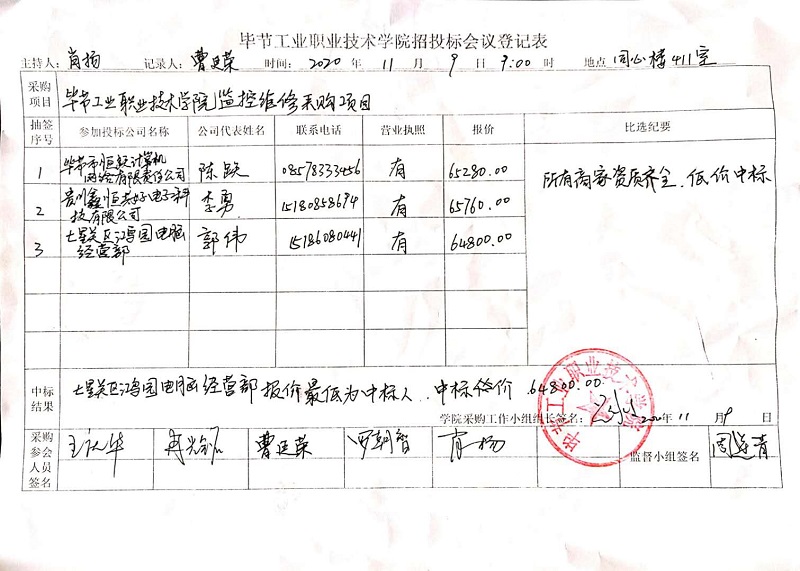 畢節(jié)工業(yè)職業(yè)技術(shù)學(xué)院監(jiān)控維修采購(gòu)項(xiàng)目中標(biāo)公告