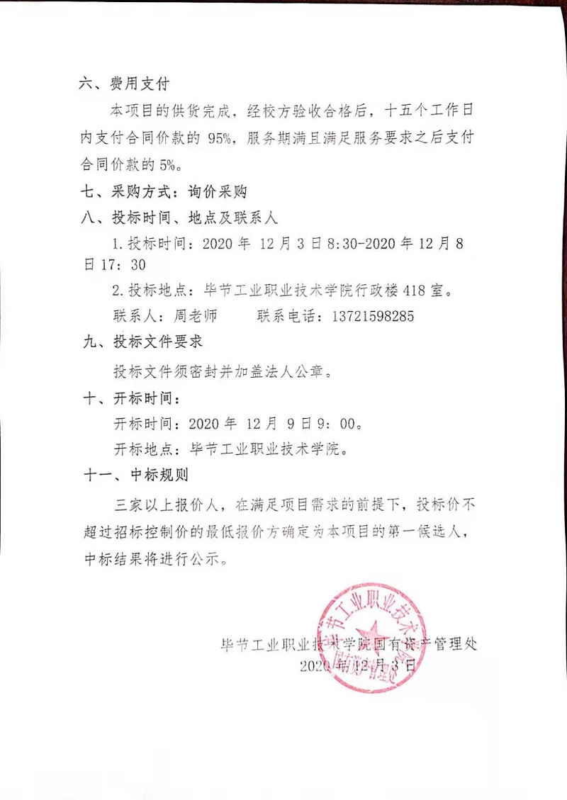 畢節(jié)工業(yè)職業(yè)技術(shù)學(xué)院監(jiān)控維修采購(gòu)項(xiàng)目中標(biāo)公告