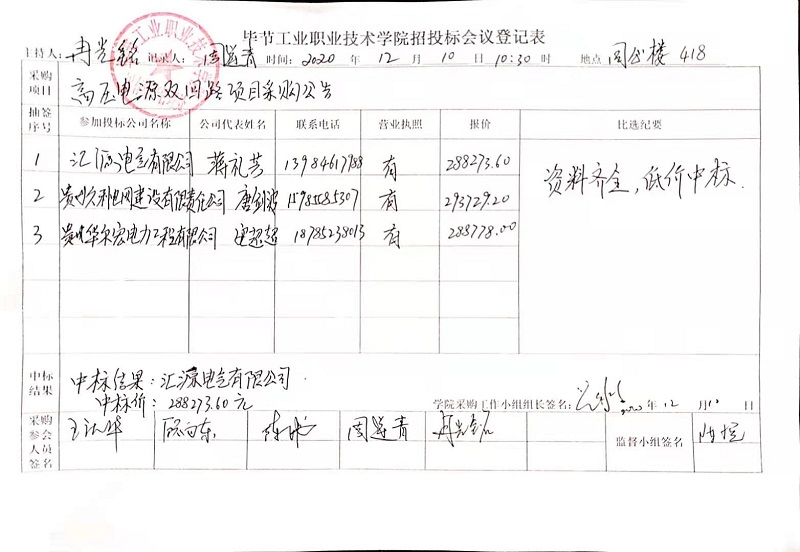 畢節(jié)工業(yè)職業(yè)技術(shù)學(xué)院高壓電源雙回路采購(gòu)項(xiàng)目中標(biāo)公告