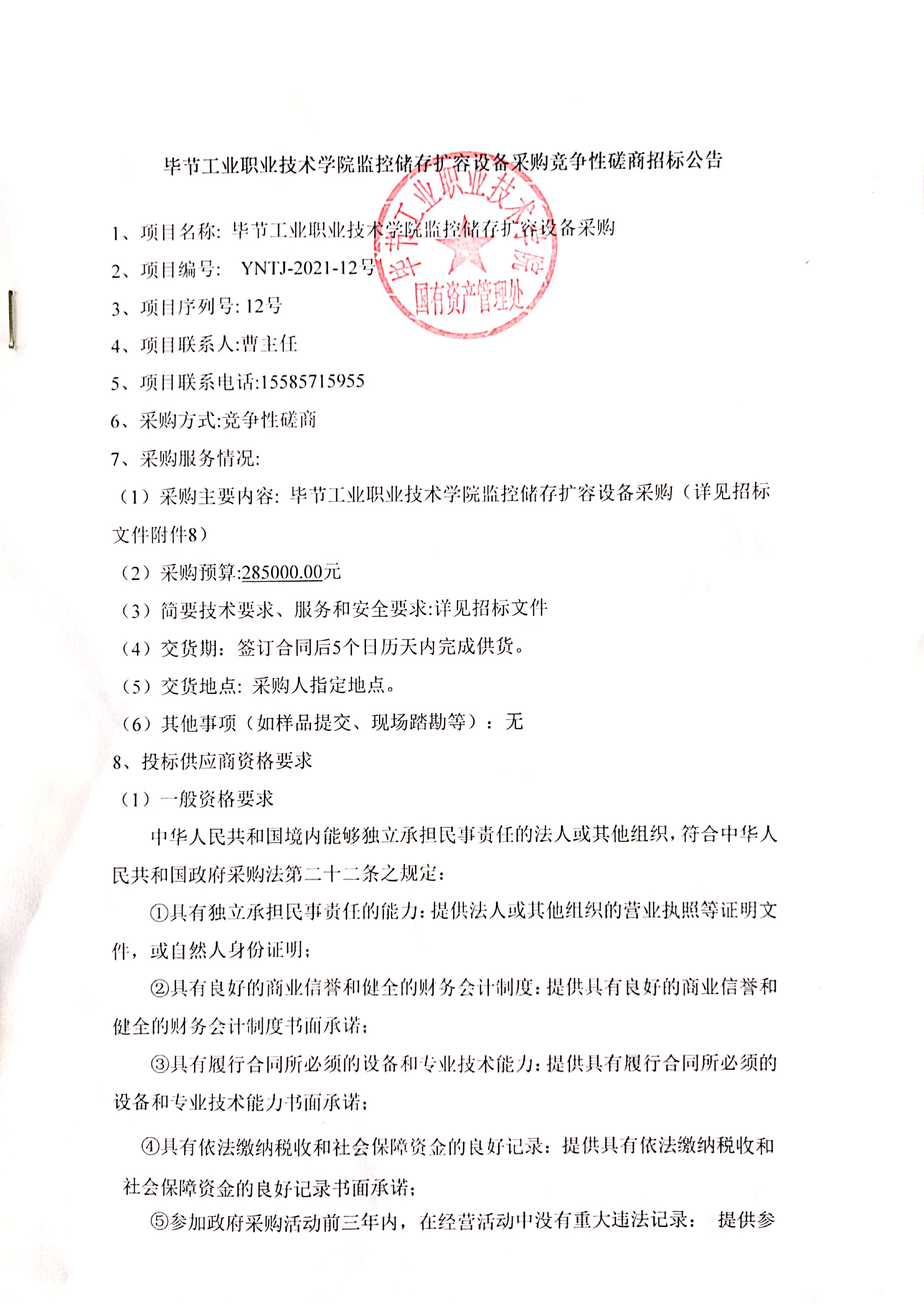 畢節(jié)工業(yè)職業(yè)技術(shù)學(xué)院監(jiān)控儲存擴(kuò)容設(shè)備采購競爭性磋商招標(biāo)公告