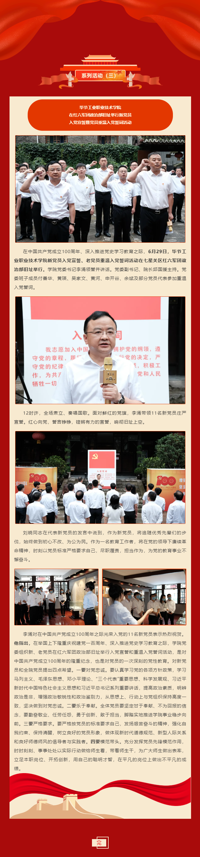 慶祝建黨100周年系列活動(三) | 畢節(jié)工業(yè)職業(yè)技術(shù)學(xué)院在紅六軍團政治部舊址舉行新黨員入黨宣誓暨黨員重溫入黨誓詞活動