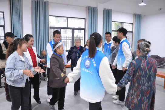 揭牌儀式后,學(xué)院心理咨詢中心周靜、龍錦春、李玉菊三名老師,以及抽調(diào)的“團體心理輔導(dǎo)治愈力量"6名學(xué)生同老人們開展了一次團體輔導(dǎo)活動,活動專門為老年人設(shè)計,周全的顧慮到老年人的身心狀況,老人們在活動參與過程中分享了自己的心聲并參與了積極的談話。依托此次活動,心理咨詢中心的師生以積極心理學(xué)的原理激發(fā)了老人內(nèi)心世界的正能量,以達到治愈的作用。隨后三位老師分別為有需要的老人提供一對一的心理輔導(dǎo),聆聽他們的心聲,讓他們回味曾經(jīng)的驕傲,促進了老人健康向上的心態(tài),養(yǎng)老中心的老人們紛紛表示度過了一個愉快而富有意義的重陽節(jié)。