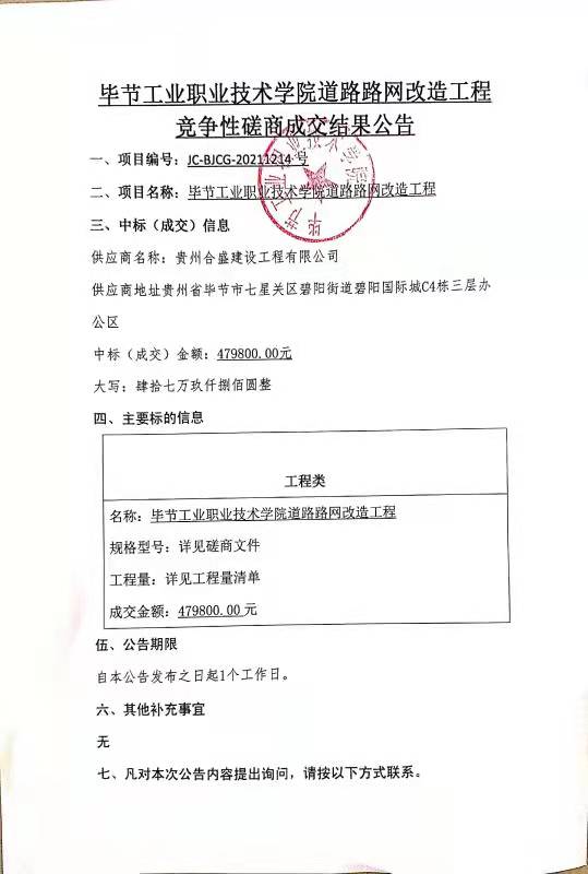 畢節(jié)工業(yè)職業(yè)技術(shù)學(xué)院道路路網(wǎng)改造工程競爭性磋商成交結(jié)果公告