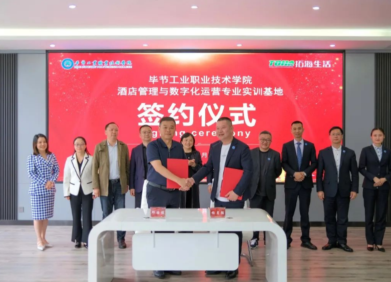 5月12日,畢節(jié)工業(yè)職業(yè)技術(shù)學(xué)院拓海學(xué)院一周年成立儀式暨畢節(jié)工業(yè)職業(yè)技術(shù)學(xué)院酒店管理與數(shù)字化運營專業(yè)實訓(xùn)基地簽約儀式在拓海學(xué)院會議室舉行。學(xué)院黨委副書記、院長邱國援,黨委委員、副院長黃瑛、黃河、吳家文、黃文碧,拓海學(xué)院名譽(yù)院長、拓海生活集團(tuán)總裁楊月強(qiáng),拓海學(xué)院院長林彬出席儀式,拓海集團(tuán)相關(guān)領(lǐng)導(dǎo)、員工代表及學(xué)院社會服務(wù)系師生代表參加儀式。 儀式現(xiàn)場 邱國援在致辭中指出,校企雙方共建拓海學(xué)院實訓(xùn)基地,為相關(guān)專業(yè)學(xué)生提供了理實一體化教學(xué)場地和實習(xí)實訓(xùn)平臺,改善了物業(yè)管理、酒店管理等專業(yè)的教學(xué)、實訓(xùn)條件,使我院辦學(xué)條件、人才培養(yǎng)體系和教學(xué)質(zhì)量得到不斷提高。同時,拓海集團(tuán)積極參與物業(yè)管理專業(yè)人才培養(yǎng)方案修訂,從行業(yè)、企業(yè)角度提出了很多人才培養(yǎng)的意見建議,邀請行業(yè)專家來校講學(xué),親自授課,使學(xué)生專業(yè)知識得到有力提升,使物業(yè)管理專業(yè)人才培養(yǎng)體系更加符合行業(yè)需求。下一步,希望校企雙方繼續(xù)深化校企合作機(jī)制、持續(xù)擴(kuò)大合作范圍、協(xié)同提升合作質(zhì)量,充分發(fā)揮拓海生活服務(wù)集團(tuán)在物業(yè)管理方面的專業(yè)優(yōu)勢,在人才培養(yǎng)方案、課程教學(xué)、實習(xí)實訓(xùn)、教師培養(yǎng)等方面提供企業(yè)建議和技術(shù)指導(dǎo),在教育教學(xué)、學(xué)生管理、素質(zhì)培養(yǎng)、技能提升等方面與學(xué)院交換經(jīng)驗,提升教師專業(yè)素質(zhì),強(qiáng)化學(xué)生技能提升,推進(jìn)“工學(xué)結(jié)合”教學(xué)模式,共同提高學(xué)院育人質(zhì)量。 邱國援在儀式上致辭 楊月強(qiáng)表示,過去一年,校企雙方本著優(yōu)勢互補(bǔ)、資源共享、互惠雙贏、共同發(fā)展的原則,對校企合作模式進(jìn)行了深層次的探索、創(chuàng)新與實踐,拓海學(xué)院的成立不僅推動了產(chǎn)教融合,也為學(xué)生提供了優(yōu)質(zhì)的實訓(xùn)基地,為企業(yè)提供了強(qiáng)有力的人才保障。下一步,企業(yè)將繼續(xù)聯(lián)手學(xué)院不斷創(chuàng)新,共同培養(yǎng)高素質(zhì)技術(shù)技能型人才,構(gòu)建校企合作雙贏局面,助推職業(yè)教育改革和地方經(jīng)濟(jì)社會高質(zhì)量發(fā)展。 楊月強(qiáng)在儀式上講話 儀式上,邱國援代表學(xué)院與拓海生活集團(tuán)簽訂了《畢節(jié)工業(yè)職業(yè)技術(shù)學(xué)院酒店管理與數(shù)字化運營專業(yè)實訓(xùn)基地(中心)建設(shè)合作協(xié)議》。學(xué)院與拓海生活集團(tuán)將再次攜手,共建畢節(jié)工業(yè)職業(yè)技術(shù)學(xué)院酒店管理與數(shù)字化運營專業(yè)實訓(xùn)基地,共同承擔(dān)科研項目、實現(xiàn)信息共享,培養(yǎng)更多高質(zhì)量的技能人才,為畢節(jié)全面推進(jìn)鄉(xiāng)村振興提供有力的人才支撐。 簽約儀式現(xiàn)場 拓海學(xué)院院長林斌、社會服務(wù)系主任呂振欣為優(yōu)秀學(xué)生羅達(dá)麗、李定奎頒發(fā)榮譽(yù)證書 優(yōu)秀學(xué)生代表羅達(dá)麗發(fā)言 儀式中的精彩節(jié)目