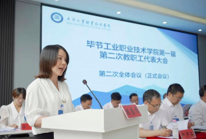 大會還聽取了《畢節(jié)工業(yè)職業(yè)技術學院 2021年財務預算執(zhí)行情況和2022年財務預算報告》《畢節(jié)工業(yè)職業(yè)技術學院工會工作報告》。書面審議了《畢節(jié)工業(yè)職業(yè)技術學院第一屆第一次教職工代表大會提案工作落實情況和第一屆第二次教職工代表大會提案征集審查情況報告(草案)》《畢節(jié)工業(yè)職業(yè)技術學院專業(yè)技術職務評聘管理暫行辦法(試行)》《畢節(jié)工業(yè)職業(yè)技術學院章程(修訂稿)》《畢節(jié)工業(yè)職業(yè)技術學院績效考核方案(修訂稿)》《畢節(jié)工業(yè)職業(yè)技術學院教師教學超課時補貼計算辦法(修訂稿)》。會議一致認為,學院工作報告回顧簡明扼要,總結(jié)成績客觀全面、實事求是,描繪藍圖催人奮進,部署工作扎實有力,符合中央、省委、市委精神和要求,是一個實事求是、措施得力、振奮人心的報告;會議一致認為,2021年財務預算執(zhí)行情況和2022年財務預算報告客觀真實,全面反映了學院經(jīng)費管理使用情況,學院基本建設工作、資產(chǎn)購置、學科建設、教學科研經(jīng)費、后勤保障的投入和資金管理使用規(guī)范合理,充分保障了學院的建設與發(fā)展;會議一致認為,學院工會工作報告實事求是,客觀務實,全面總結(jié)了工會2021年的工作,思路清晰地謀劃了2022年主要工作;會議一致認為,第一屆第一次教職工代表大會提案落實情況及第一屆第二次教職工代表大會提案案征情況報告觀真實地反映了一屆一次教代會代表提案和提案辦理情況,體現(xiàn)了學院決策的科學化、民主化和規(guī)范化,保障教職工民主管理和監(jiān)督的權利,切實推動了學院各項事業(yè)高質(zhì)量發(fā)展;會議一致認為,畢節(jié)工業(yè)職業(yè)技術學院專業(yè)技術職務評聘管理暫行辦法(試行)、畢節(jié)工業(yè)職業(yè)技術學院章程(修訂稿)、畢節(jié)工業(yè)職業(yè)技術學院教師教學超課時補貼計算辦法(修訂稿)指導思想明確,修訂依據(jù)充分,是科學民主決策的過程,對于促進學院完善內(nèi)部治理結(jié)構(gòu)、建設現(xiàn)代大學制度體系具有重大現(xiàn)實意義。