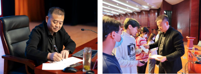 “祝你生日快樂……”隨著背景音樂響起,過生日的同學們帶著驚喜的笑容走上講臺,享受著這份專屬的溫馨,現(xiàn)場氣氛熱烈,在場同學們熱情地送上陣陣掌聲與歡呼?!安回撋厝A、砥礪前行,做有理想、有信念、有擔當?shù)男聲r代高素質(zhì)技能人才”“奮發(fā)前行,做與眾不同的畢節(jié)工職院技能型新青年”……一句句寫在明信片上的青春寄語既是院長對新同學的期待,更是院長對新同學特別生日的別樣祝福。 在16位同學的生日“大禮包”中,一張親筆簽名的青春寄語明信片成為最有意義的“生日祝?!?。明信片的正面展現(xiàn)了校園內(nèi)一年四季的美景與青春芳華,表達了學院對新同學的歡迎與祝福。而在明信片的背面,是一句句手寫的青春寄語與院長的親筆簽名,將思政融于校園生活,用生動具體的祝福引導新同學扣好人生的“第一??圩印保龑瑢W們珍惜時光、不負韶華、不負青春。這場別樣的“開學第一課”,讓同學們剛進入學校就感受到了畢節(jié)工職院這個大家庭的溫暖。 機電工程系學生高安會說:“今天是一個特別的日子,我19歲了,在沒有家人的陪伴下過生日,心里未免有些許失落,但在“開學第一課”看到我跟其他同學的姓名出現(xiàn)在會場的屏幕上,緊接著邱院長和同學為我們送上生日的祝福,真是既驚喜又感動,對我來說這是19年以來最為難忘的一次生日。作為一名大學生,我會時刻提醒自己,珍惜在大學生活的每一分每一秒,不讓時光虛度?!?/span> 信息工程學生廖英杰說:“報到當天就真切地感受到了老師、同學們的熱情,在今天這個特別的日子,我還收到了學校領(lǐng)導親手寫的明信片,這份入學‘禮物’讓我們特別高興,也感到特別溫馨?!?/p> 土木工程系同學歐宇鵬說:“今天收到的禮物對我來說有著很特別的意義。里面飽含著學校和院長對我們的期望,我一定會努力學習、不斷提升自己的能力,發(fā)揮自己的價值,做一個對社會有用的人。”