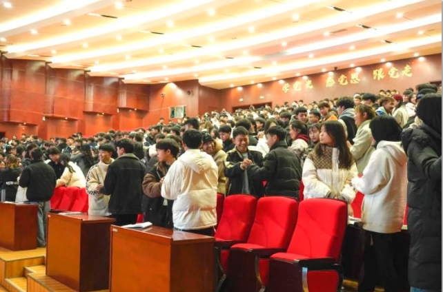 2月15日,學(xué)院黨委委員、副院長(zhǎng)黃文碧在會(huì)議中心為各班級(jí)心理委員、寢室心理聯(lián)絡(luò)員共589人開展業(yè)務(wù)知識(shí)培訓(xùn)。 (別開生面的破冰游戲“擊掌”活躍了現(xiàn)場(chǎng)氣氛,拉開了培訓(xùn)的序幕)