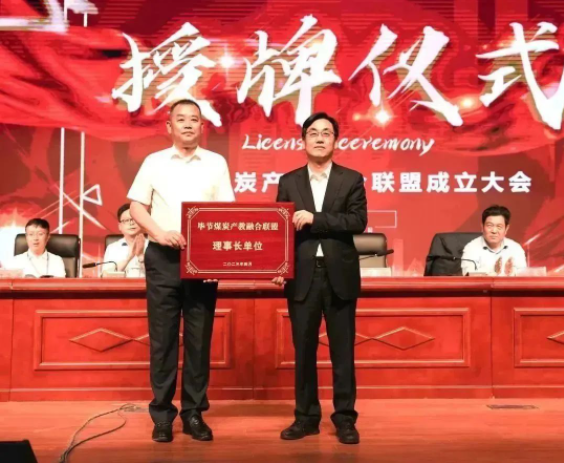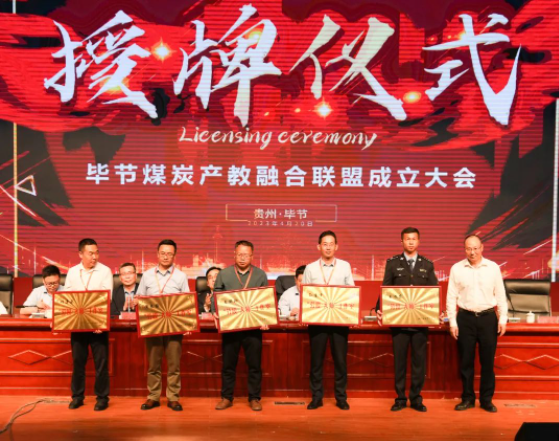 (省能源局總經(jīng)濟(jì)師張棟、市政副市長(zhǎng)謝志昌、向畢節(jié)煤炭產(chǎn)教融合聯(lián)盟副理事長(zhǎng)單位授牌)