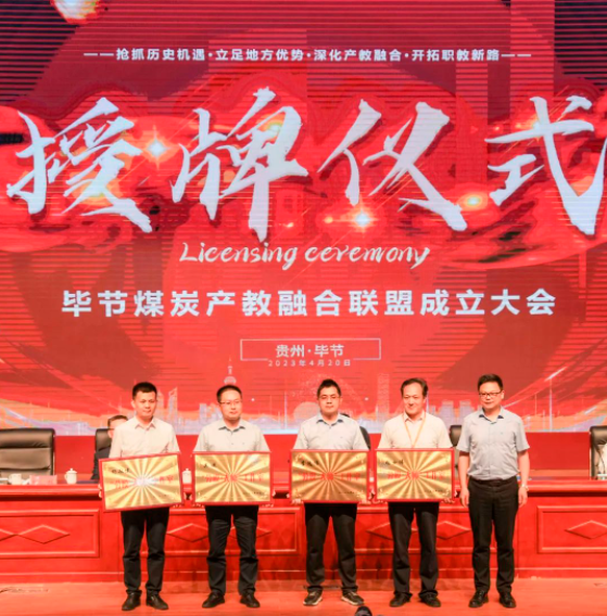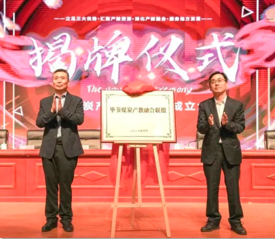 (省教育廳副廳長(zhǎng)楊天儀,市政府副市長(zhǎng)謝志昌為畢節(jié)煤炭產(chǎn)教融合聯(lián)盟揭牌)
