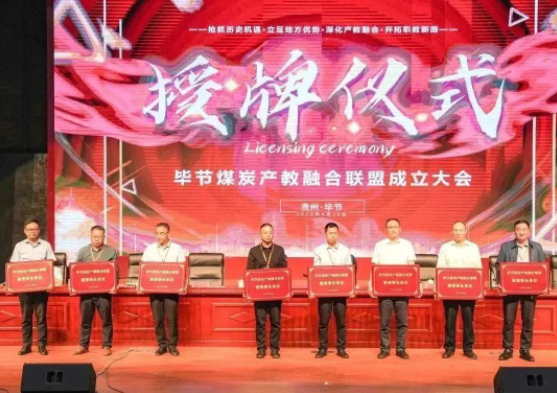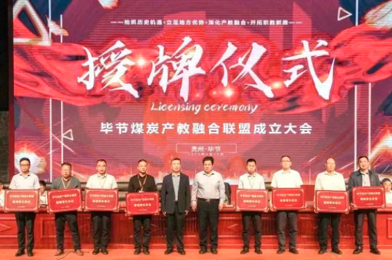 (省教育廳副廳長(zhǎng)楊天儀向畢節(jié)煤炭產(chǎn)教融合聯(lián)盟理事長(zhǎng)單位授牌)