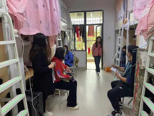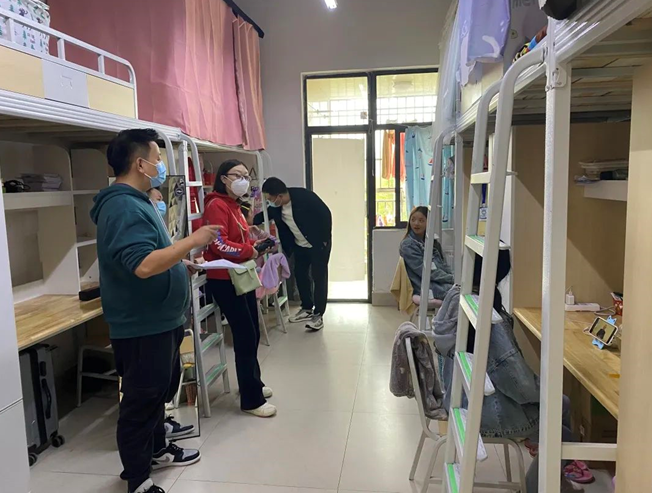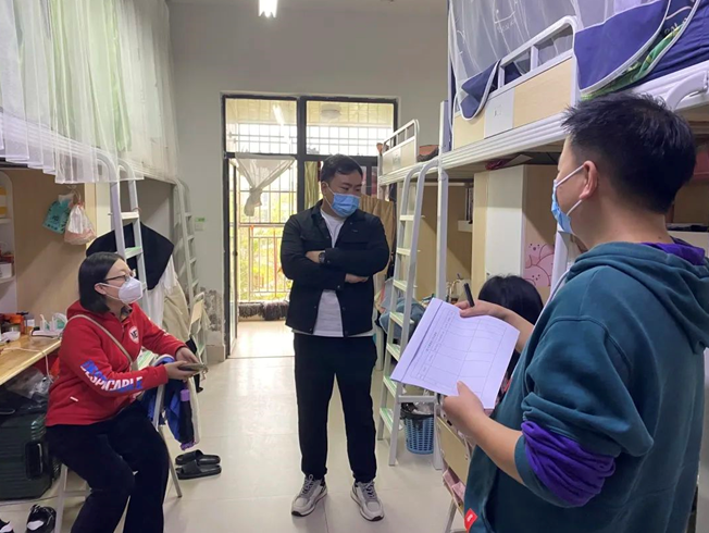 我系聶濤、史曉嵐、何應(yīng)垚、蒙光國(guó)等多名老師第一時(shí)間趕赴學(xué)院防控一線,組織開展疫情靜默期間各項(xiàng)工作,并帶領(lǐng)我系志愿者同學(xué)用心用情服務(wù)學(xué)生、關(guān)愛(ài)學(xué)生。在靜默期間走訪學(xué)生寢室,關(guān)注重點(diǎn)特殊人群、排查心理健康異常情況等,并做好相應(yīng)記錄。