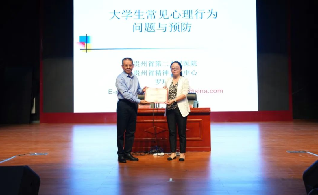 培訓(xùn)會上,羅環(huán)躍教授圍繞“大學(xué)生常見心理行為問題與預(yù)防”主題,從心理行為問題與精神疾病的區(qū)分、大學(xué)生常見心理行為問題、大學(xué)生心理問題的預(yù)防策略三個方面,對如何識別學(xué)生心理問題的正常與異常情況、學(xué)生常見心理行為問題及產(chǎn)生原因進(jìn)行分析,并就如何構(gòu)建良好家庭關(guān)系和朋輩關(guān)系,著力提升學(xué)生心理健康品質(zhì)等內(nèi)容進(jìn)行重點(diǎn)講解。通俗的語言,豐富的案例,理論與實(shí)踐的有效結(jié)合,現(xiàn)場學(xué)生個案問題處理的交流與互動,幫助參訓(xùn)教師了解了學(xué)生心理健康知識,提升了服務(wù)學(xué)生心理健康的水平和能力。 會后,黃文碧代表學(xué)院為羅環(huán)躍頒發(fā)了畢節(jié)工職院心理學(xué)客座教授聘書。