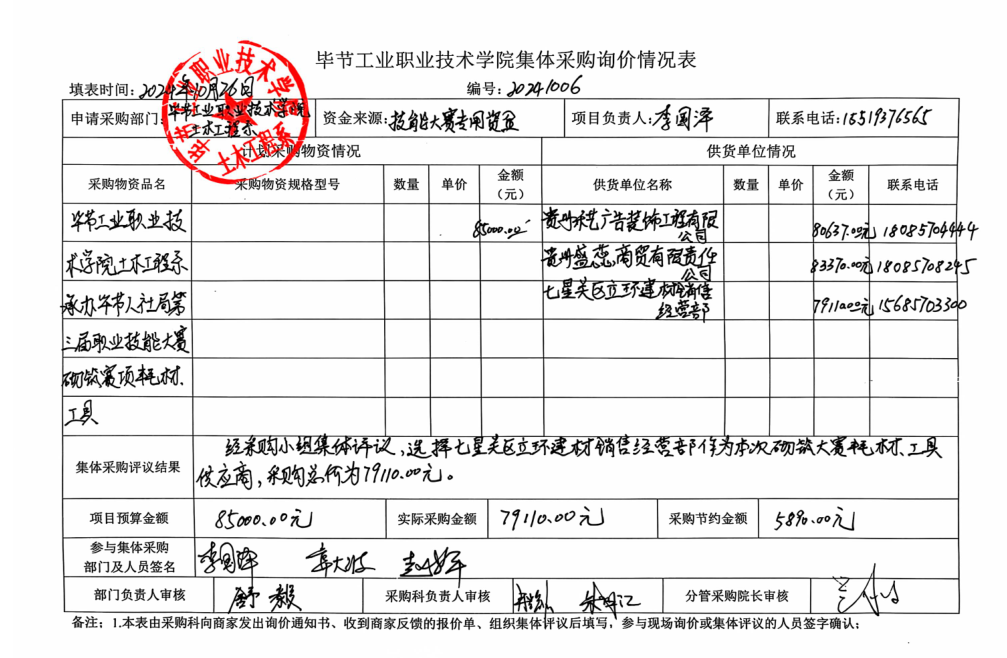 土木工程系承辦畢節(jié)市人社局第三屆職業(yè)技能大賽混凝土建筑賽項(xiàng)耗材、工具詢(xún)價(jià)情況公告