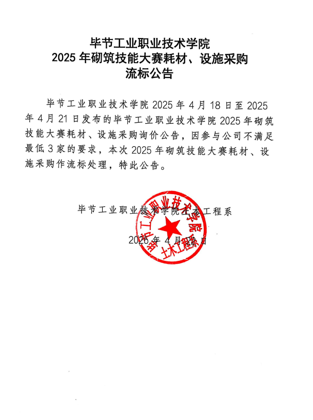 2025年砌筑耗材、設(shè)施流標(biāo)公告