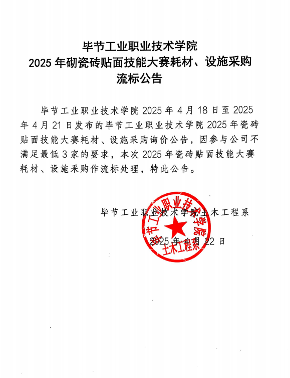 2025年砌筑耗材、設(shè)施流標(biāo)公告