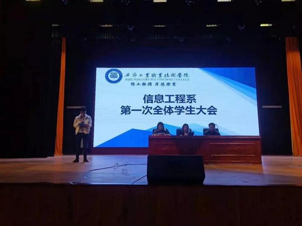 為進(jìn)一步加強(qiáng)系部管理與建設(shè),畢節(jié)工業(yè)職業(yè)技術(shù)學(xué)院信息工程系于2019年12月19日在學(xué)院會議中心召開學(xué)生大會,到場的有信息工程系負(fù)責(zé)人黃亞男,系學(xué)生科胡蓉、潘愚老師、各班班主任及信息工程系全體學(xué)生。