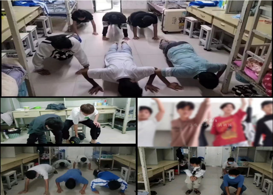 其次,積極引導(dǎo)健身鍛煉。通過(guò)樓棟群、班級(jí)群等平臺(tái)向同學(xué)們推介居家健身操和健身舞蹈,鼓勵(lì)學(xué)生從床上下來(lái),從被窩里出來(lái),伸伸腰,踢踢腿,活動(dòng)活動(dòng)筋骨,確保良好的身體素質(zhì)。