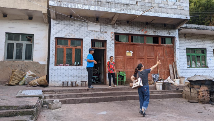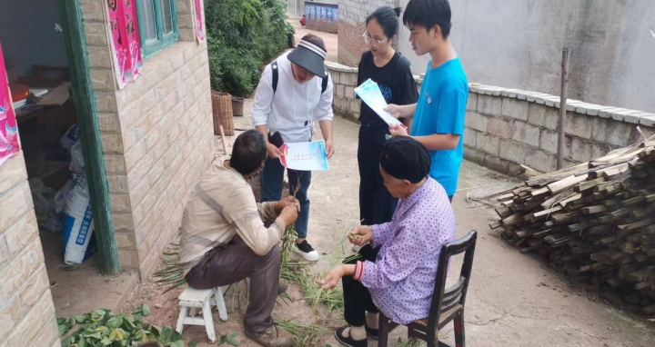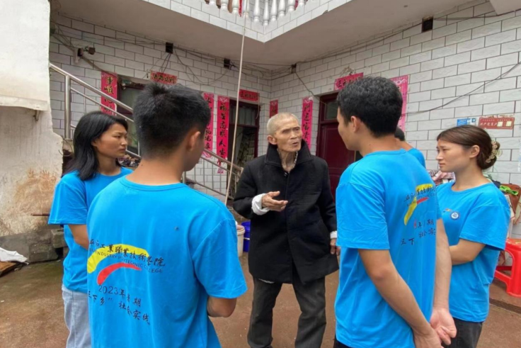 圖為指導(dǎo)老師帶著實(shí)踐小分隊(duì)對(duì)村民的住戶進(jìn)行考察
