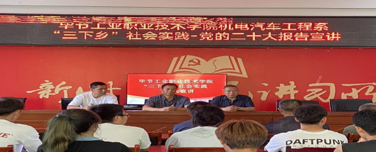 2023年7月4日-2023年7月11日,畢節(jié)工業(yè)職業(yè)技術(shù)學(xué)院機(jī)電汽車工程系社會(huì)實(shí)踐團(tuán)隊(duì)在畢節(jié)工職業(yè)學(xué)院領(lǐng)導(dǎo)的大力支持下,在學(xué)院團(tuán)委的號(hào)召下,在系部領(lǐng)導(dǎo)及團(tuán)總支的精密部署下,前往大方縣響水鎮(zhèn)沙灣村開(kāi)展以“學(xué)習(xí)二十大 永遠(yuǎn)跟黨走 奮進(jìn)新征程”為主題的社會(huì)實(shí)踐活動(dòng)。