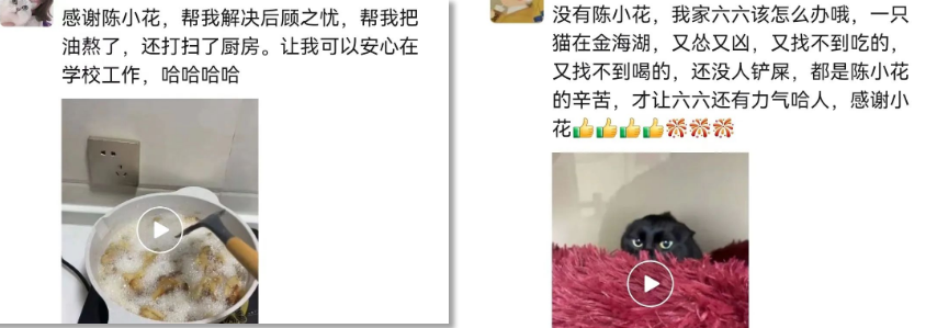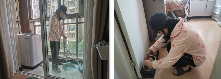 實(shí)行靜默管控以來,機(jī)電工程系老師陳榮雪,每天忙碌于給在校進(jìn)行疫情防控工作的老師們收拾屋子,整理家務(wù)。掃地、澆花、倒垃圾、喂寵物,甚至是熬豬油、洗衣服……把老師們家里的一切打理得井井有條。