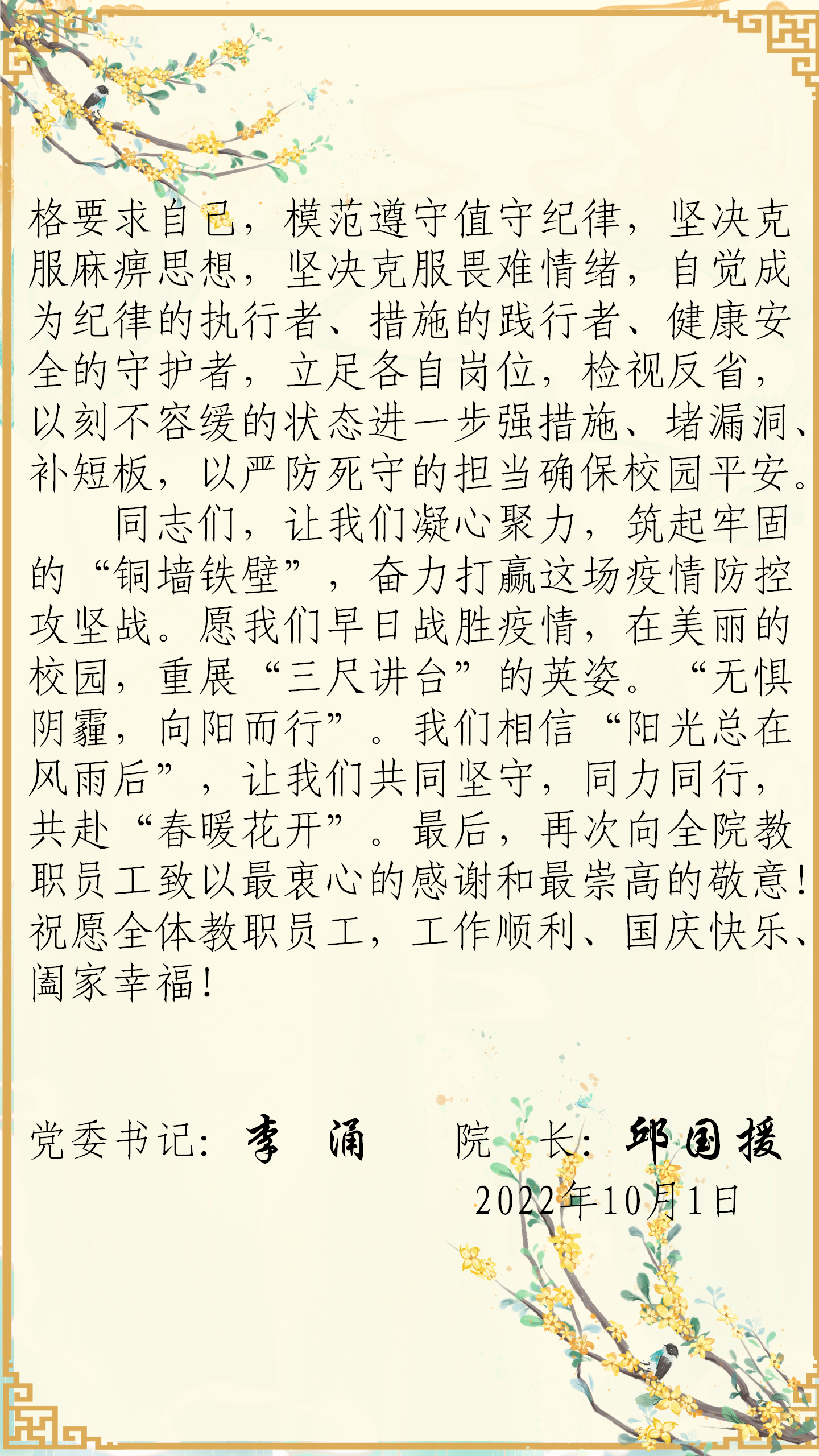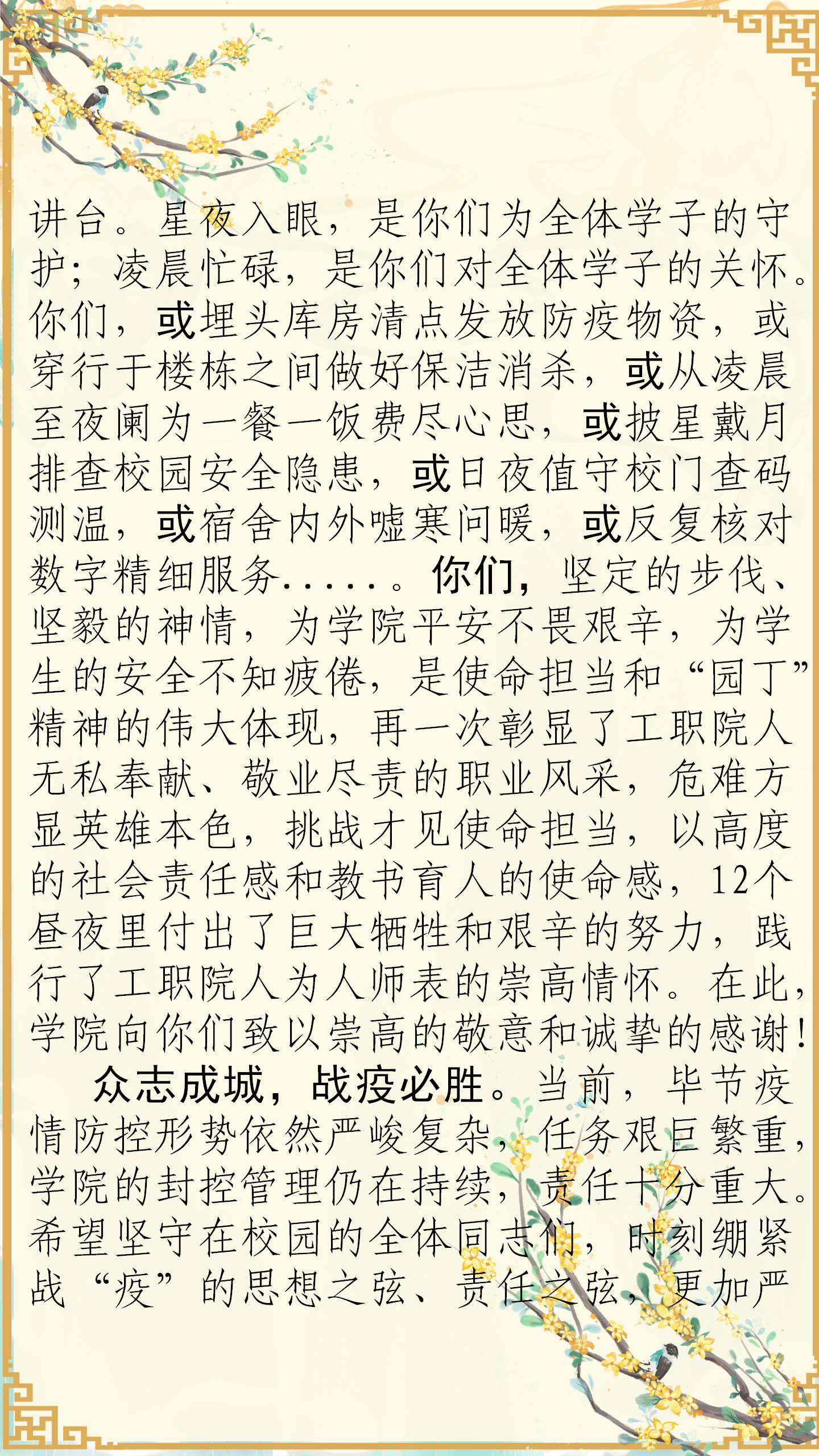 致堅(jiān)守校園疫情防控的全體教職工的一封信