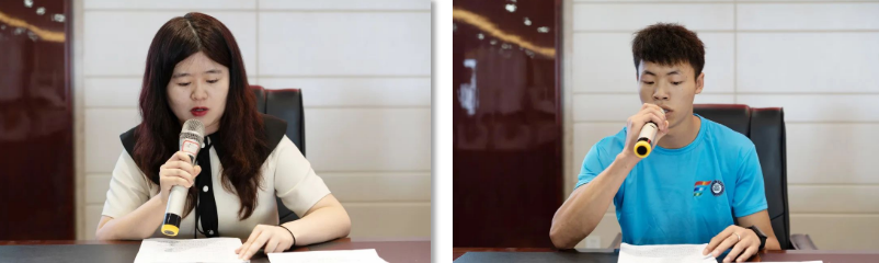 (教師代表閆夢(mèng)瑩、學(xué)生代表黃杏在儀式上發(fā)言)