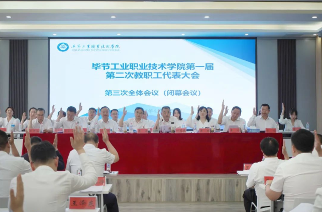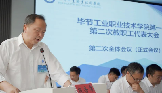 下午,召開畢節(jié)工業(yè)職業(yè)技術(shù)學(xué)院第一屆第二次教職工代表大會第三次全體會議(閉幕會議)。李涌作總結(jié)講話,邱國援主持會議。
