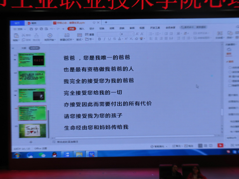 首先,周靜老師分享了兩位學(xué)長(zhǎng)、學(xué)姐的故事,以他們?cè)?jīng)的努力和今天的成功為例,告訴同學(xué)們職業(yè)教育的重要性和職業(yè)規(guī)劃的必要性,讓學(xué)生意識(shí)到只有保持積極健康的心態(tài),才能更輕松愉快的面對(duì)學(xué)習(xí)和生活。